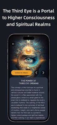 Third Eye uses extremely powerful meditation music focused on third eye opening and the elevation of consciousness. This is achieved through pineal gland stimulation using brainwave entrainment music. The result of elevated consciousness is an increase in our natural extrasensory abilities. With elevated consciousness, awareness, creativity, extrasensory perception, and intuition are all increased.